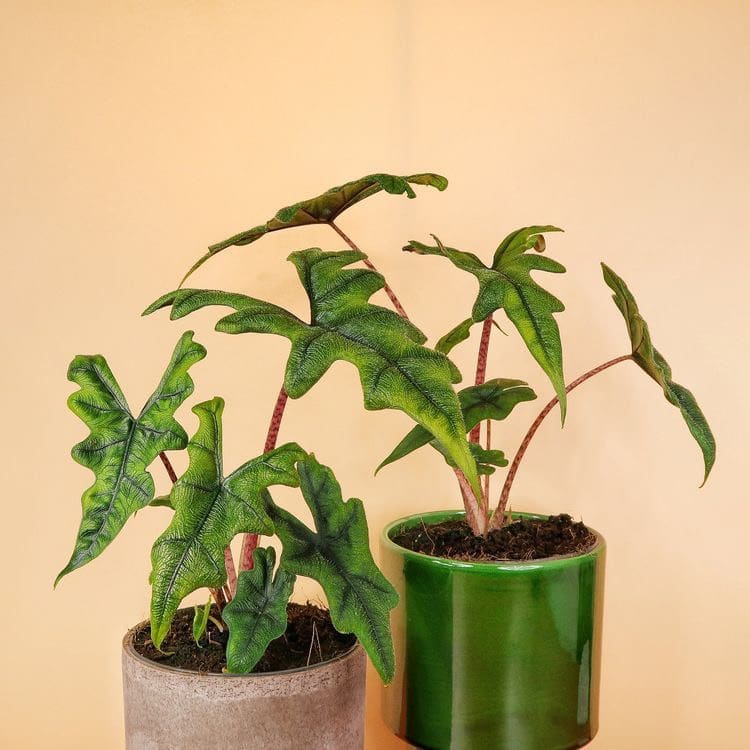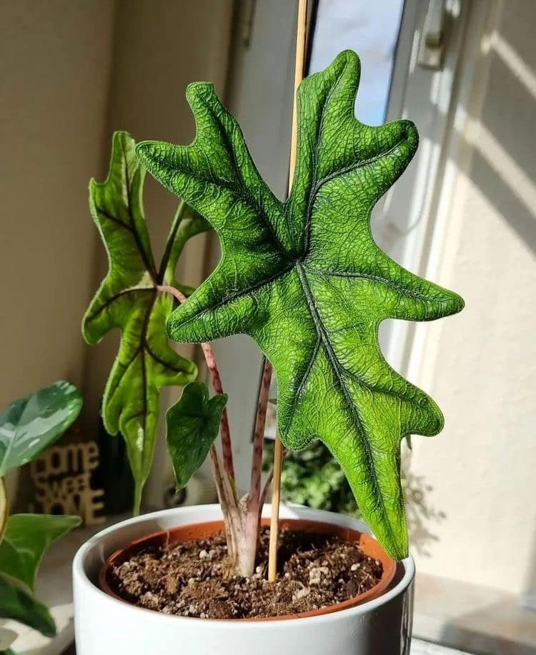 Cây Alocasia Jacklyn là loại cây khá độc đáo với thùy xẻ sâu tạo thành hình mũi tên cho lá. Những đường gân màu xanh lục đen nổi bật trên nền xanh rực rỡ của lá khiến cây vô cùng ấn tượng, bắt mắt.