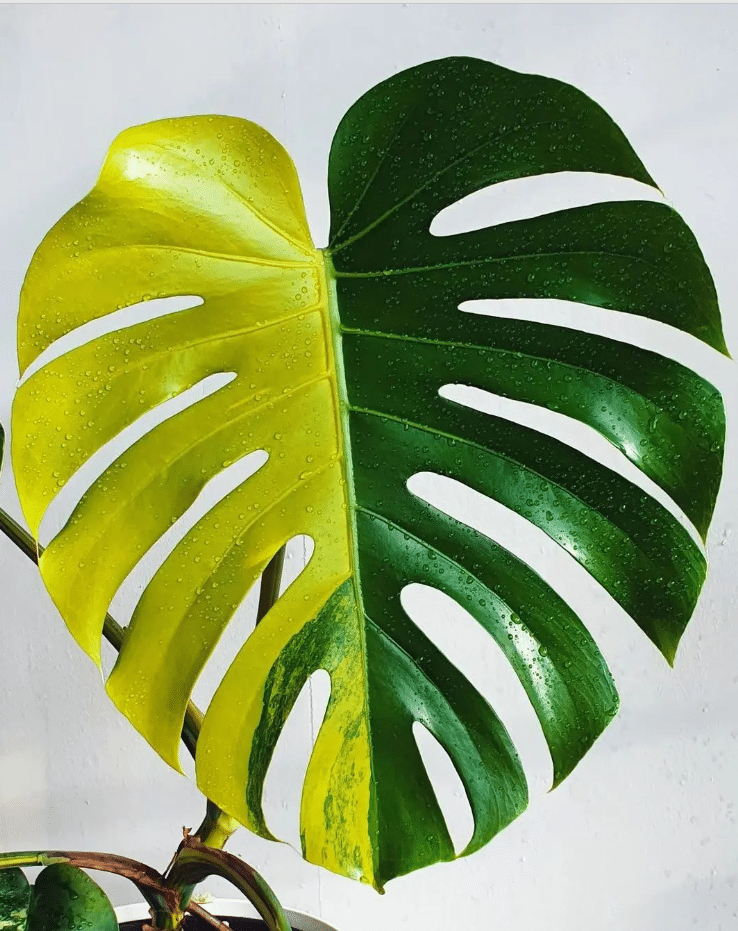 Dòng cây Monstera đột biến màu vàng chanh xen kẽ màu xanh truyền thống của cây